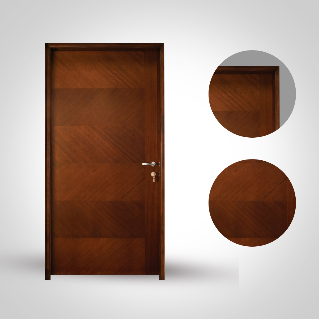 Introducing the “Neslit” Veneer Door, a perfect harmony of craftsmanship, durability, and contemporary design. Meticulously finished with premium sapale wood veneer, this door exudes sophistication through its clean, symmetrical layout and naturally rich wood tones. The fine grain patterns of sapale veneer create a striking visual texture, offering depth and warmth that elevate any modern living space.